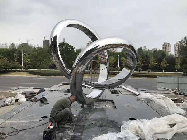 城市景观雕塑多以不锈钢为材料,表层可做各种丰富的效果,大体有油漆饰面,不锈钢镜面抛光 彩钢 拉丝等效果